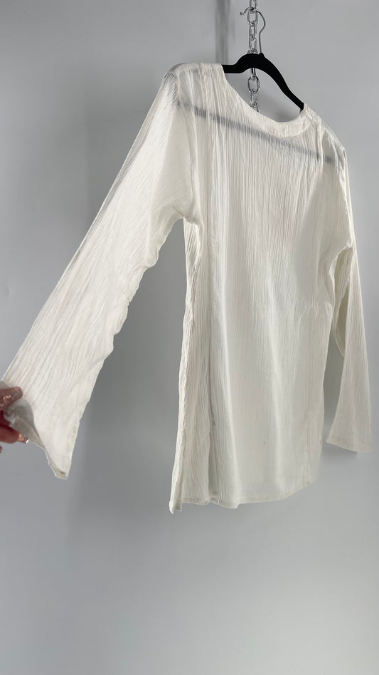 Deadstock Vintage Magic 1980s 100% Cotton Crinkle Tunic with Embroidery and Sequins (Small)
