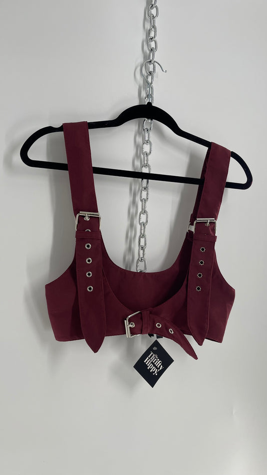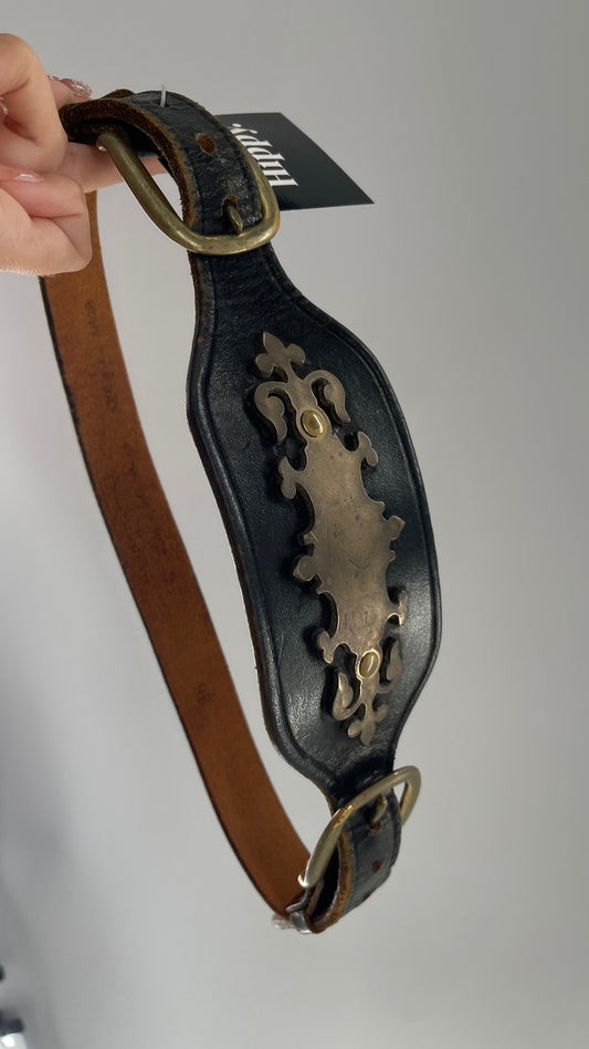 Vintage 1920s Black Leather Horse Bridle Waist Belt with Metal Bracket