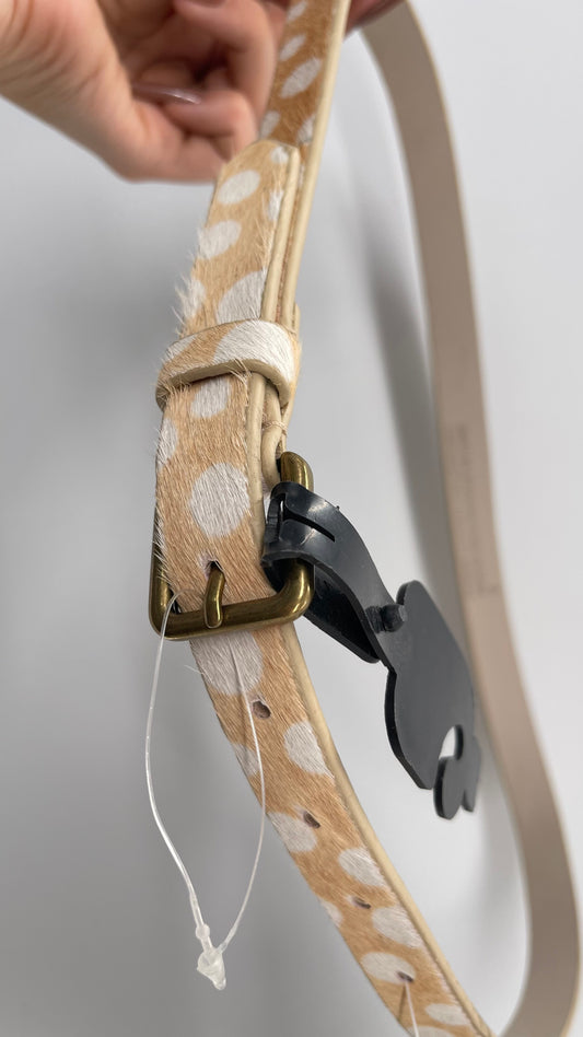 Genuine Leather Pony Hair Tan Polka Dot Belt (Small)