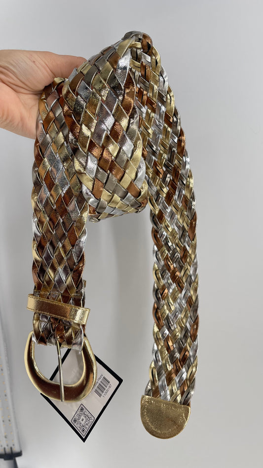 Metallic Gold Bronze Silver Braided Thick Belt (One Size)