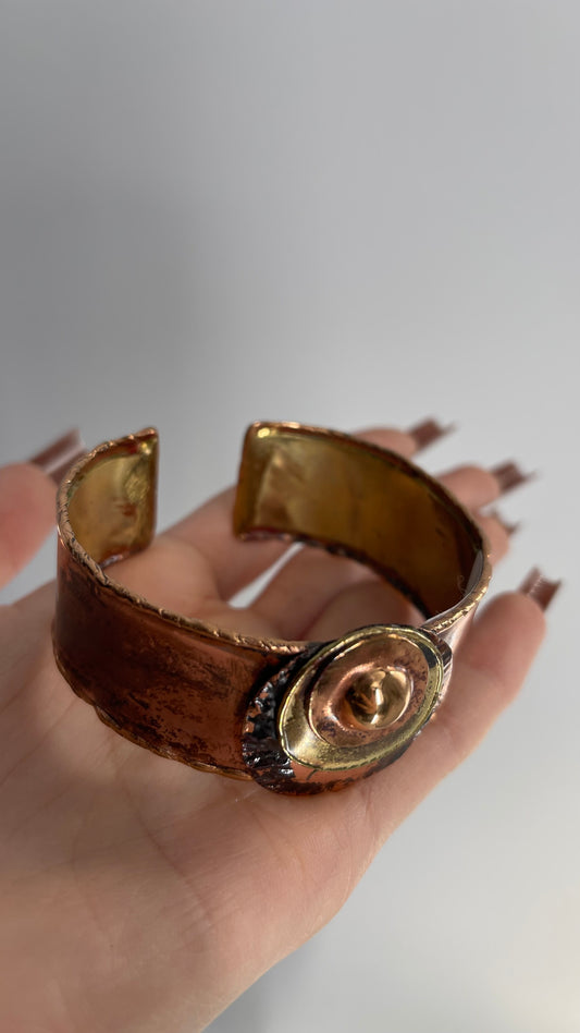 Vintage B536 Brutalist Sculptural Brass Copper Bracelet Cuff