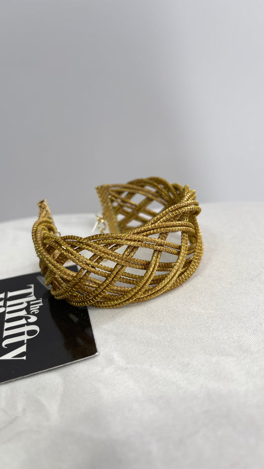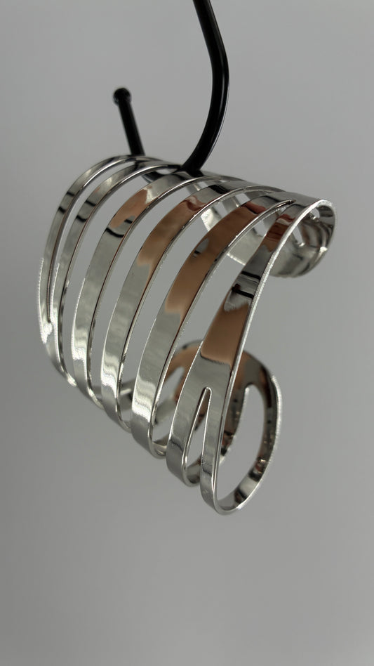 Deadstock Vintage MADRAG Silver Oversized Bangle Cuff with Metallic Bands