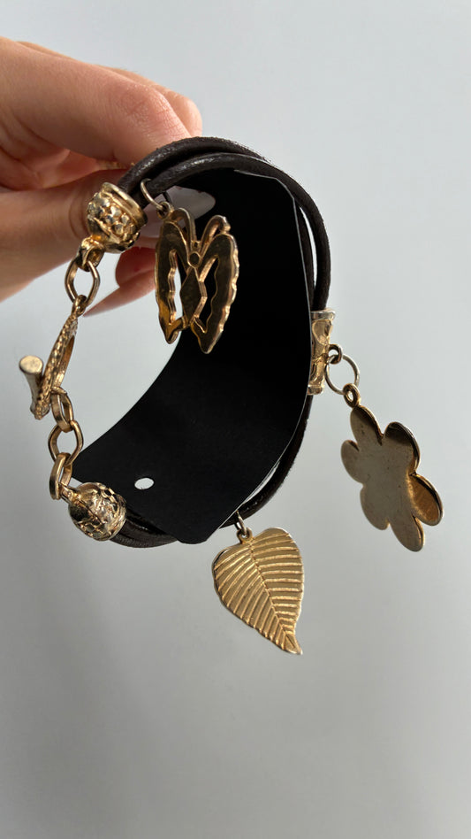Vintage Multi-band Bracelet with Oversized Gold Charms