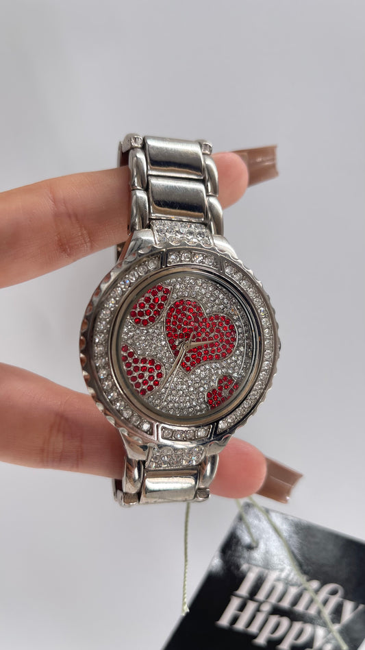Vintage 2000s Silver BEBÊ Bejewled Rhinestone Heart Watch