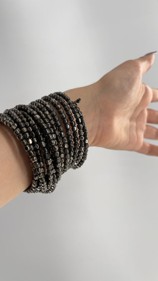 Vintage Gunpowder Metal Stone Wrap Around Bangle Bracelet