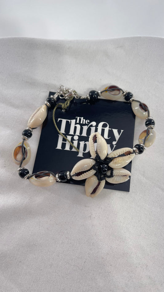 Vintage Shell Flower + Black Beads Shell Bracelet/Anklet