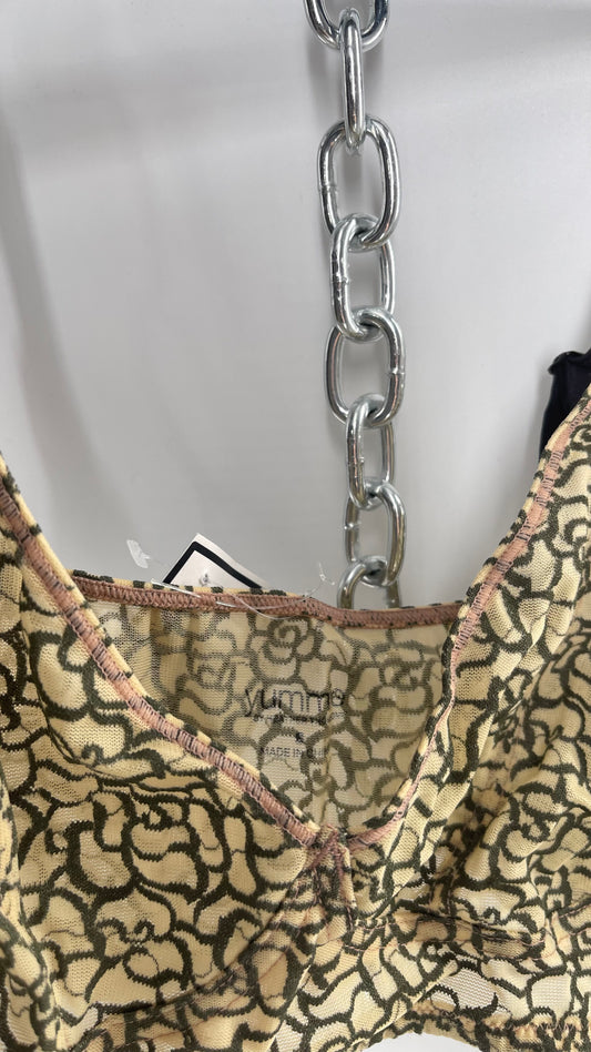 Yummie Black/Beige Rose Embroidered Mesh Bralette (Small)