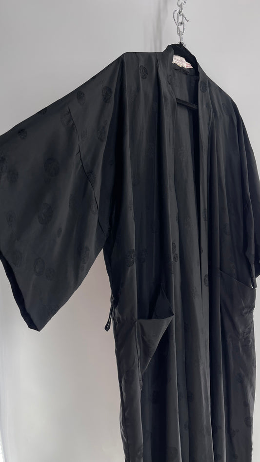 Vintage TREESHA 100% Pure Silk Black Long Embossed Robe (Large)