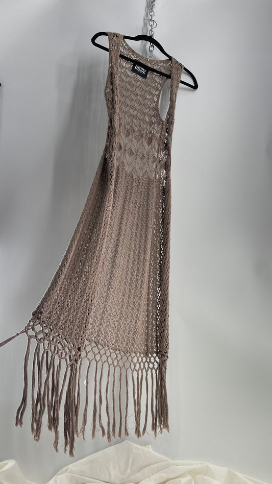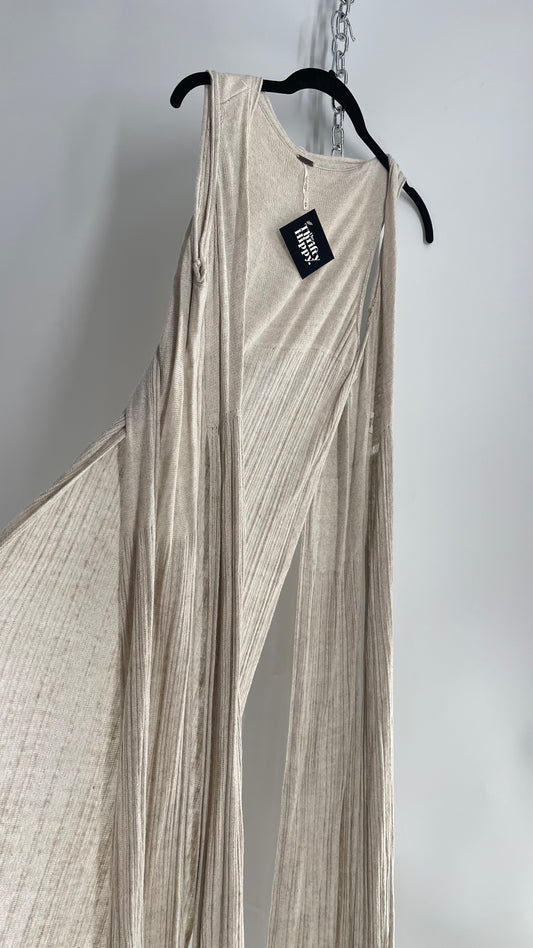 Free People Sleeveless Full Length Knit Beige Cape (XS)