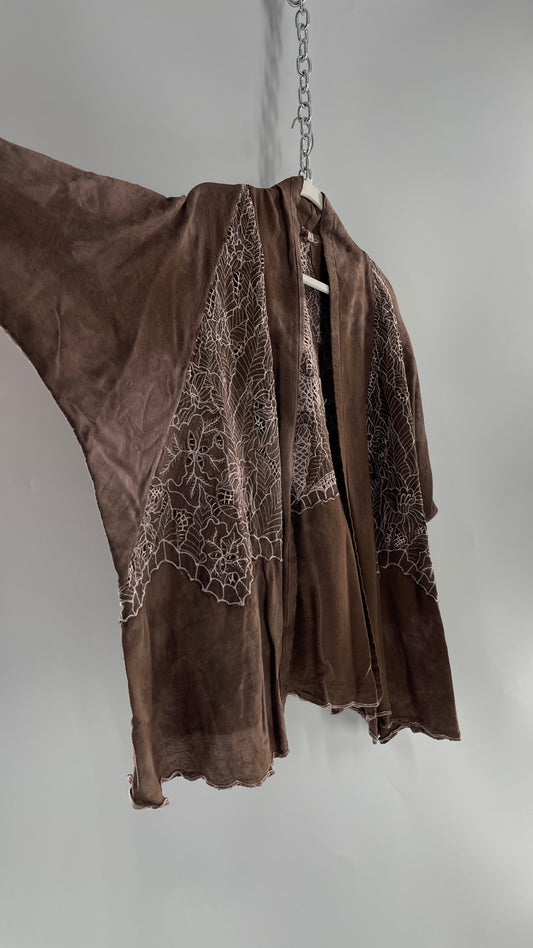 Free People Hand Dyed 100% Cotton Cape with Eyelet Lace Detailing (Medium)