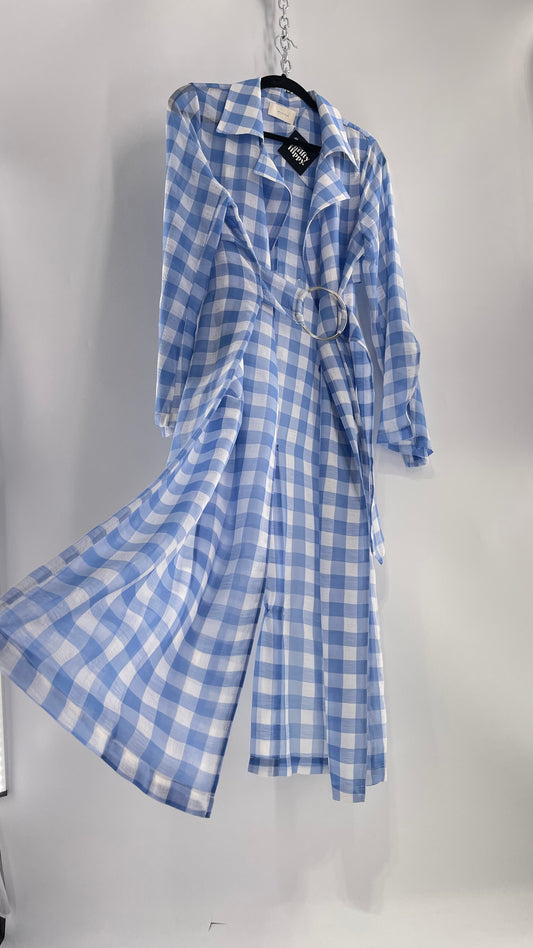 Capulet Anthropologie Gingham Baby Blue Coat/Cape (S)