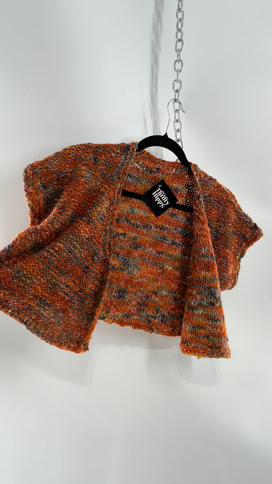 Vintage Hand Knit Burnt Orange Shrug Cape