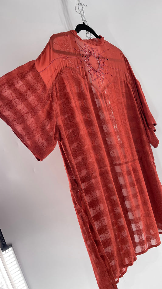 NFO Anthropologie Burnt Orange Cape With Embroidered Solstice Sun and Crescent Moon Designs (One Size)