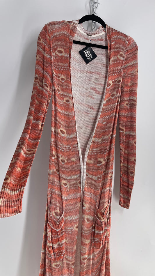 Free People Knit Floor Length Salmon Orange Patterned Cape (L)