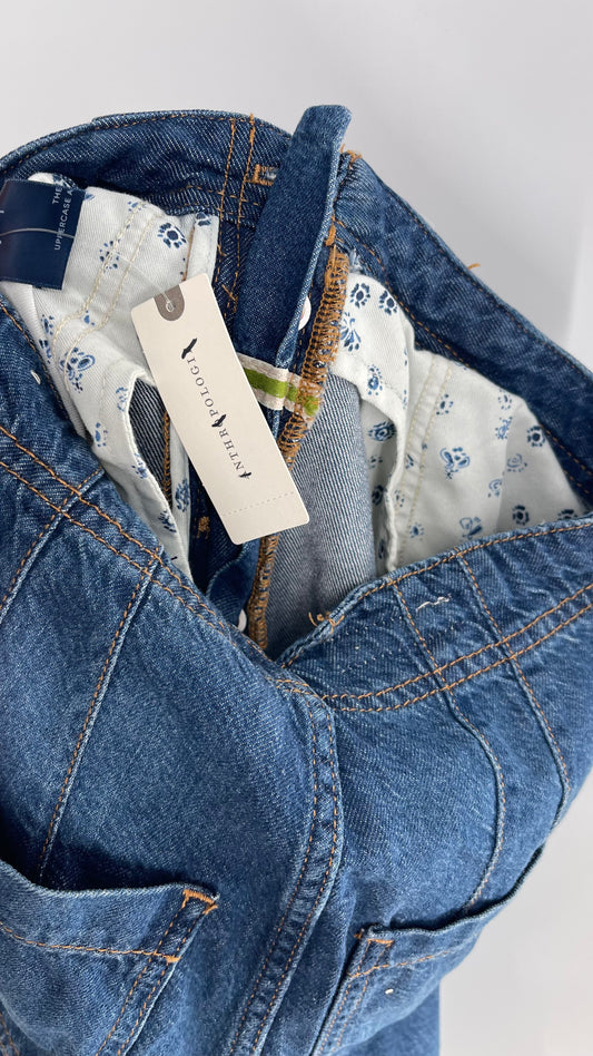 Pilcro High Waisted Medium Wash Wide Leg Jeans with Pleated Bum (27 Tall)