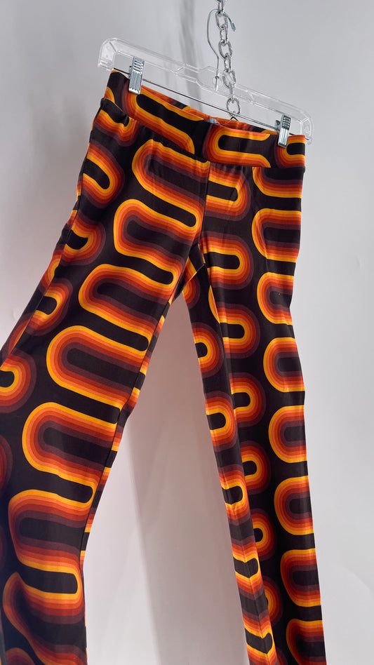 Urban Outfitters Brown Flare Pants with Retro Orange Arch Pattern (XS)