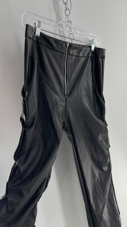 Vintage Black Faux Leather Stacked Flared Pant (29)