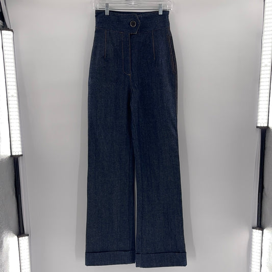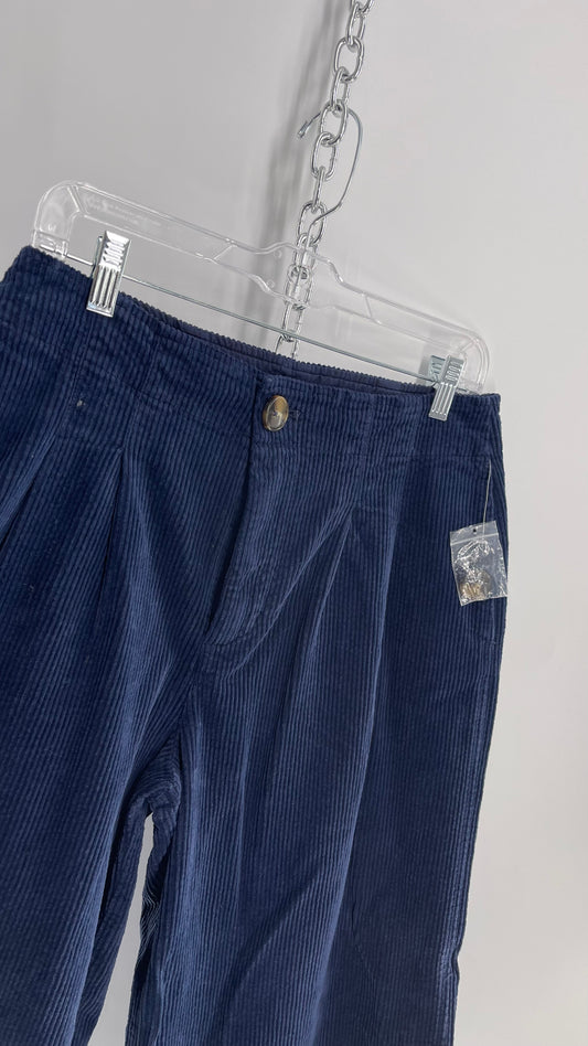 We The Free Cobalt Blue Corduroy Pleated Waist Wide Legs with Button Bag (27)