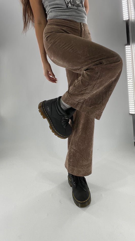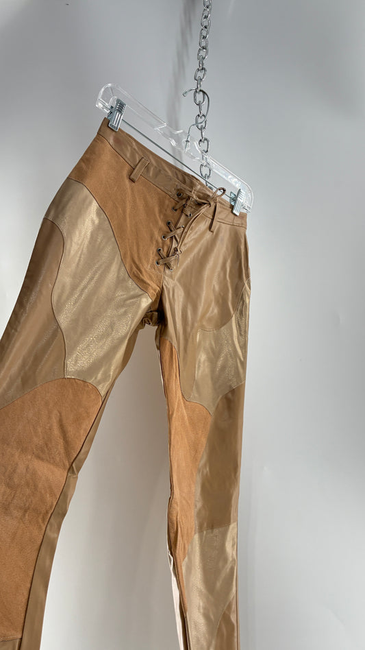 Vintage HYPOACTIVE Tan Leather Lace Up Plus Size Flare Pants (22W)