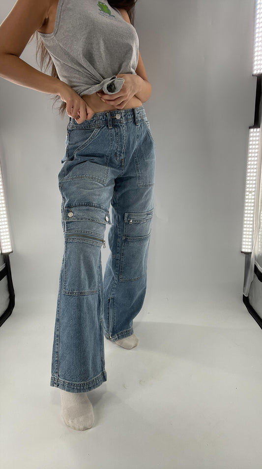 Free People Wide Leg Cargo Jeans Covered in Pockets, Zippers and stitching (27)