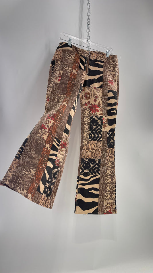 Animal Print Patchwork Graphic Low Waisted Kickflares Free People We The Free (30)