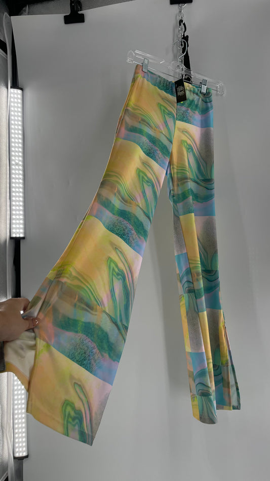 Rare Vintage TARK ‘1 Ultra Low Rise Pink and Green Striped Kick Flares