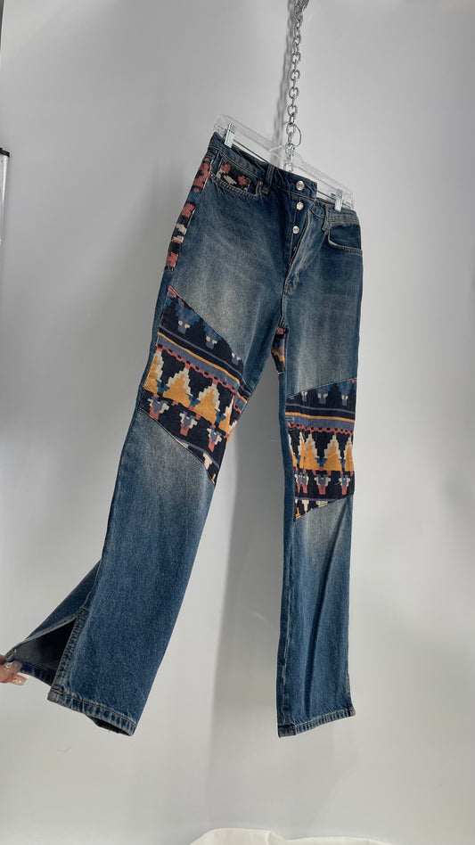 Free People Tan/Denim Distressed Straight Leg (Large)