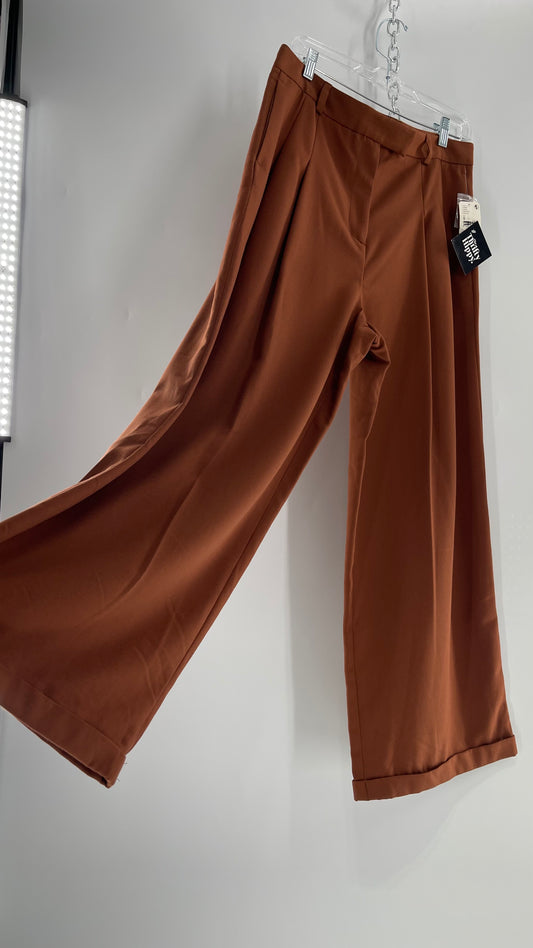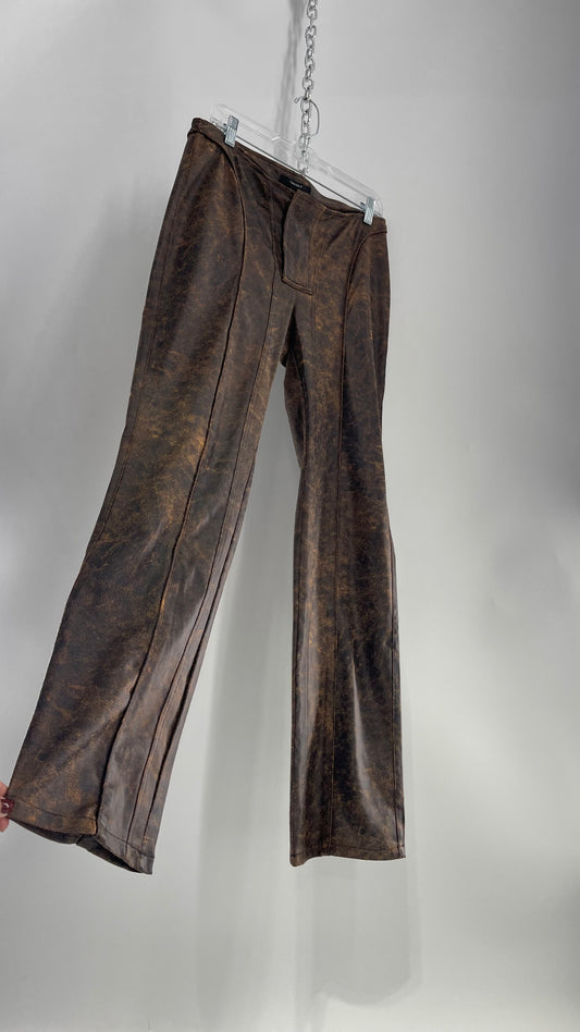 Vegan Brown Leather Kick Flares with Panel Details (Large)