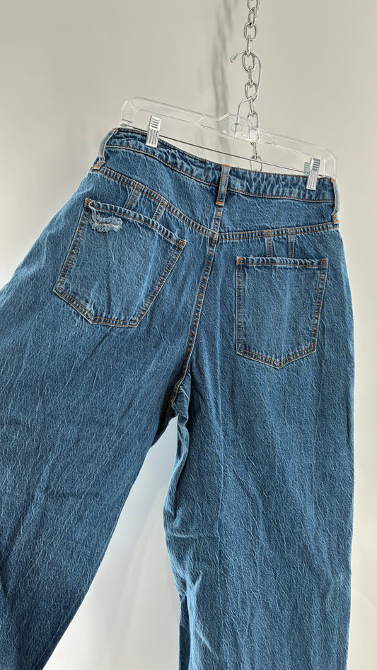 Free People Medium Wash Wide Leg Distressed Jeans (30)