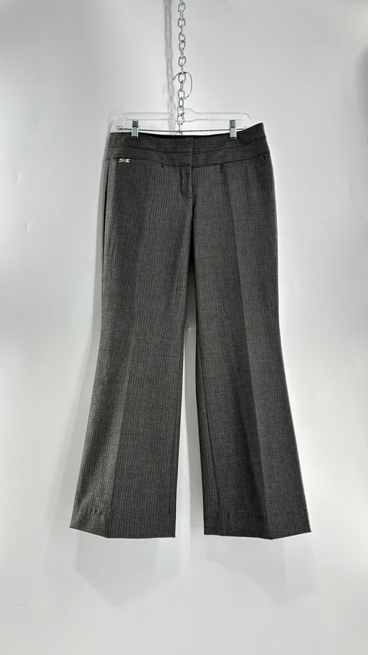 Vintage 1990s EXPRESS Editor Dark Grey Pinstripe Ultra Low Rise Thick Hip Band Kick Flares (6R)