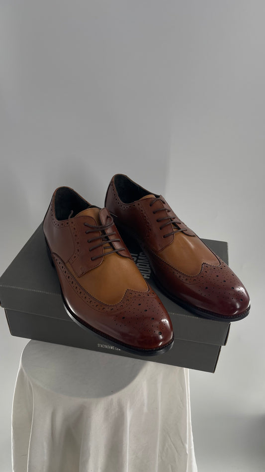 STACY ADAMS Brown and Tan Patent Leather Oxfords (13)