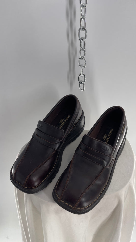 Rare Vintage Brown Leather Sketchers Loafers 1990s (7.5)