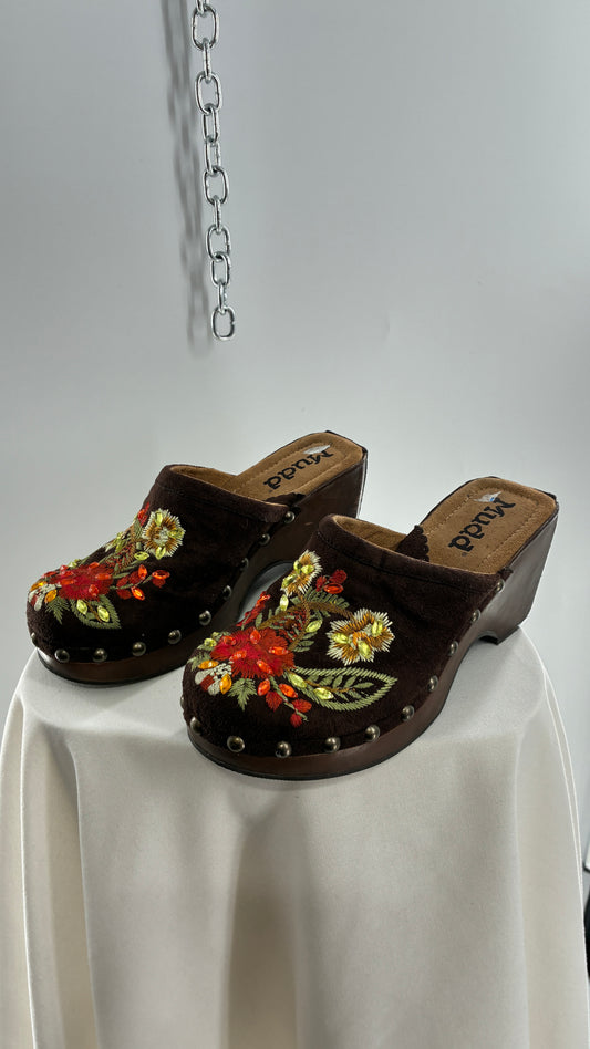 Vintage MUDD Brown Clog with Side Studding and Embroidered Details (6.5)