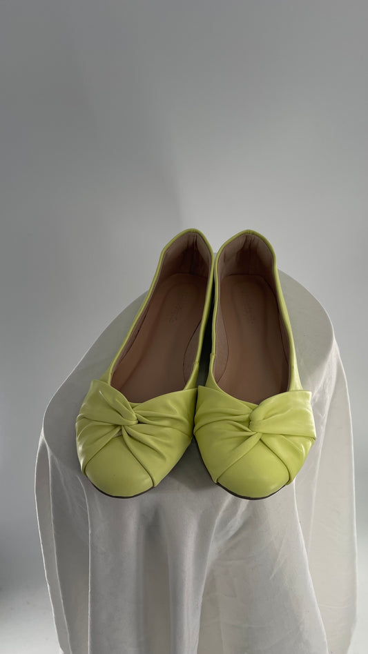 Brazilian Sonhos Dos Pés Neon Yellow Ruched Ballet Flat (37)
