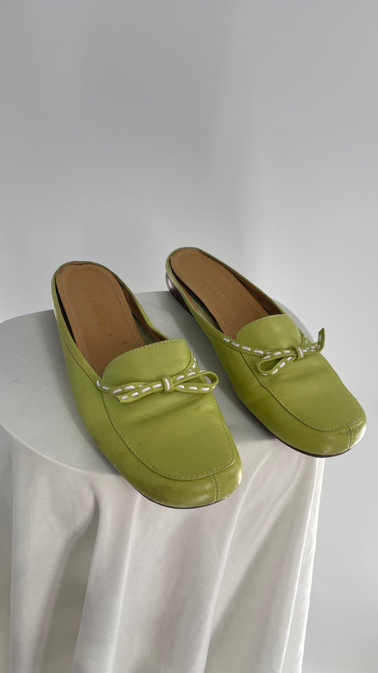 Vintage Liz Claiborne Green Leather Bow Front Slip Ons (8.5)