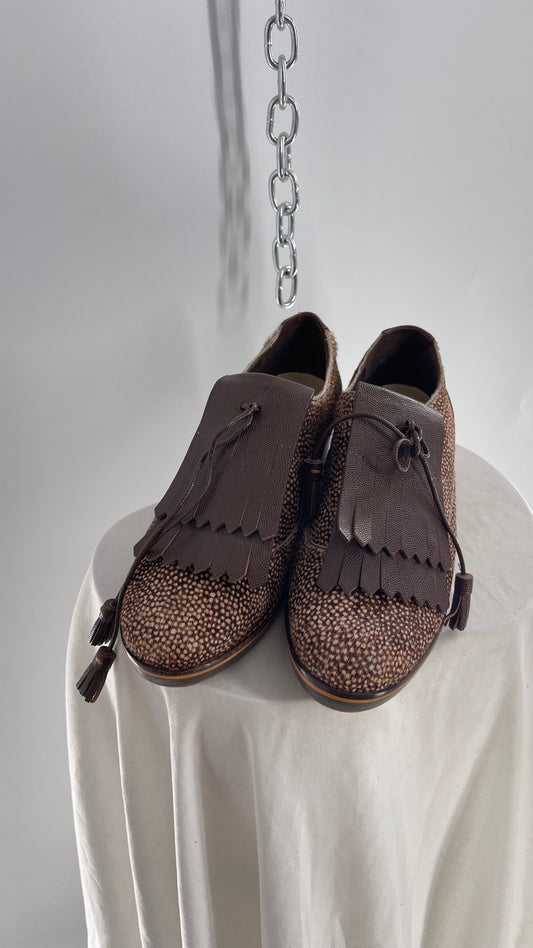 Cole Haan Women’s Spotted Pony/Cow Hair Lace Up Tie Tassel Wedge Oxford Shoes with Lace Covers (8)