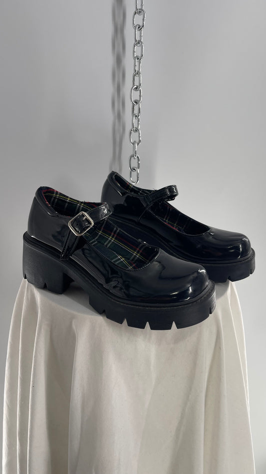 Black Patent Mary Janes with Chunky Platform and Plaid Lining (8)