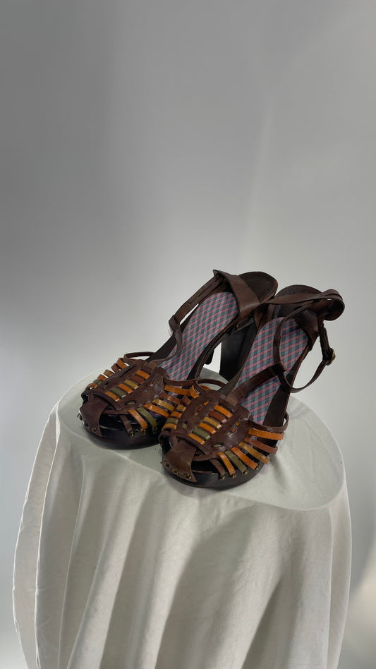 Vintage 1990s BCBGIRLS Wooden Clog Heel with Leather Woven Front (41)