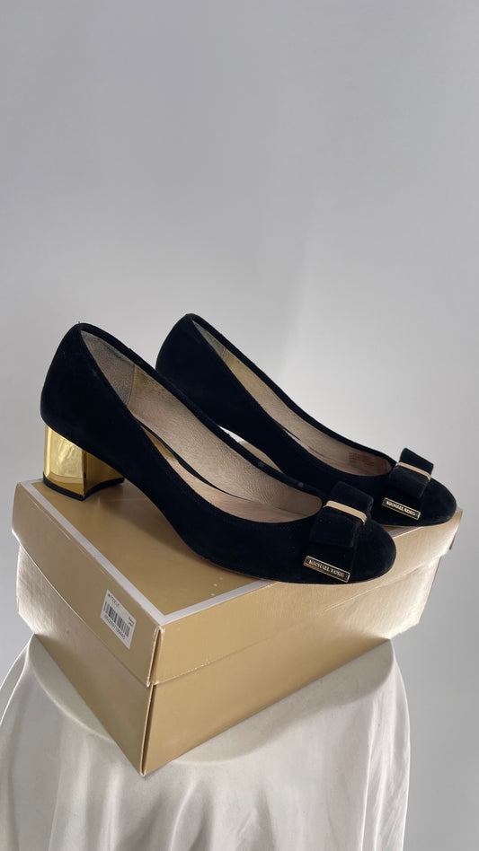 Vintage Michael Kors Black Suede Rounded Toe Kitten Heel with Bow Front (8.5)