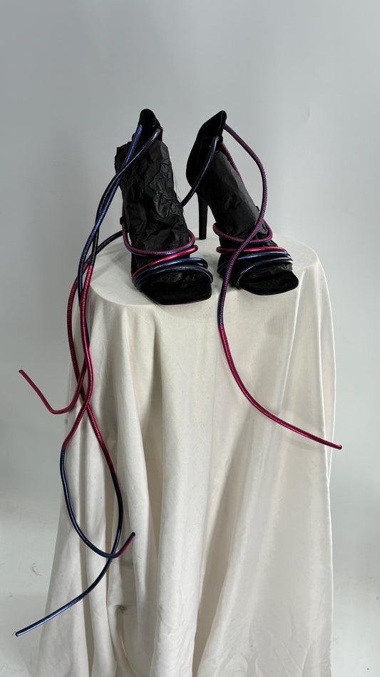 Free People Square Toe, Wrap Around Gladiator Style Metallic Fuchsia Heel (38)