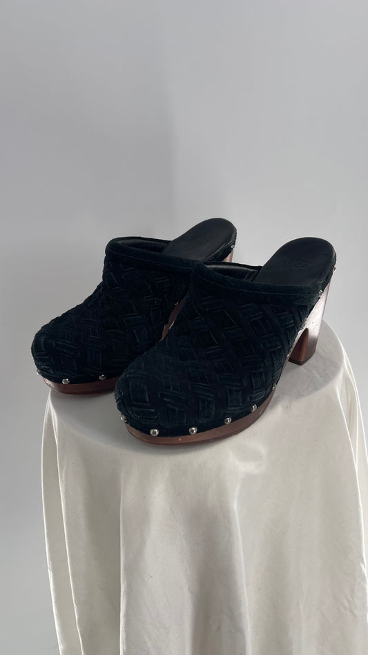 Vintage UGG Black Woven Leather Studded Wooden Heel Clog (8)