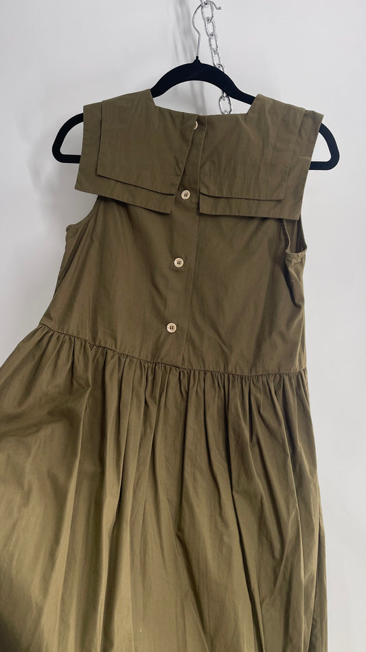 TOAST Olive Green Cotton Dress with Sailor Style Neckline (C)(6)