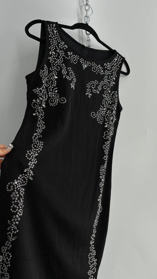Vintage ST JOHN Black Metallic Wool Knit Dress with Silk Blend Lining and Rhinestone Embellishments (6)