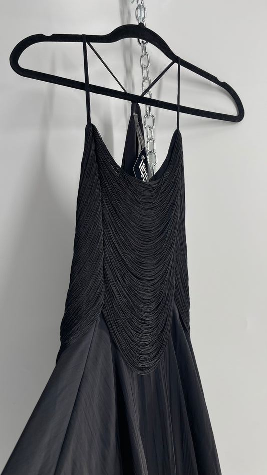Anthropologie Black Handkerchief Hem Midi Dress with Heavy Draped Rope Bodice (4)