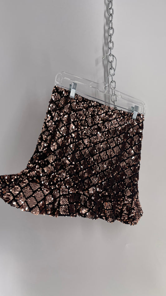 Bronze Checkered Sequin Mini Skirt with Ruffled Hem (XS/S)