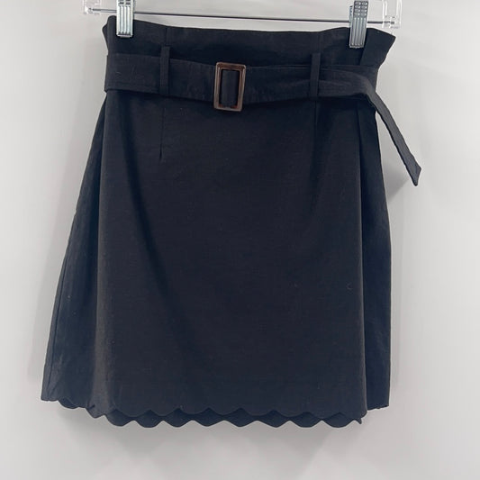 Urban Outfitters Black Linen Mini Skirt With Belt and Scalloped Hem(Size M)