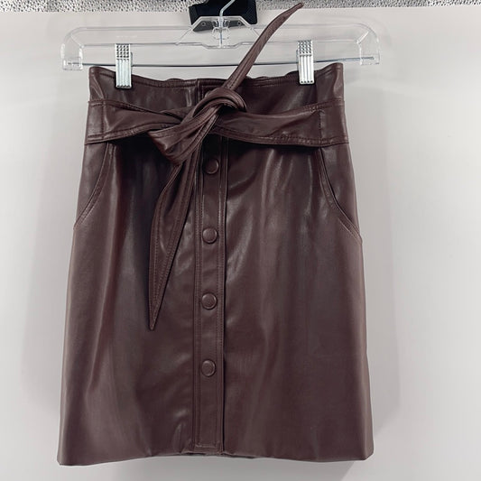 Urban Outfitters Brown Vegan Leather Mini Skirt with Elastic Waist, Belt and Front Buttons (Size XS)