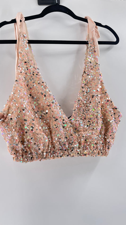 Intimately Free People Big Night Tie Shoulder Pink Sequin Crop (Medium)