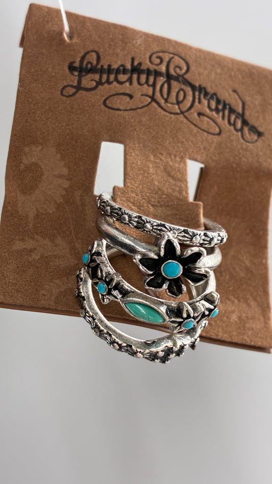 Lucky Brand Silver Embossed Ring Set with Turquoise Stone
