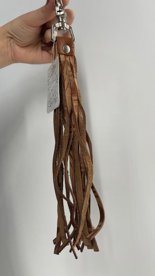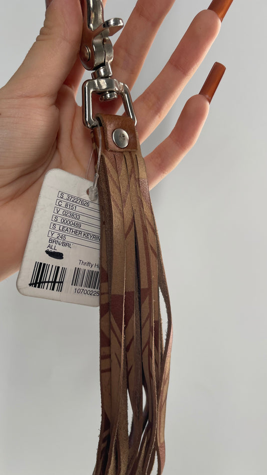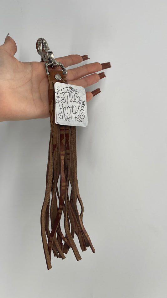 Free People Patterned Leather Tassel Keychain Ring with Tags Attached